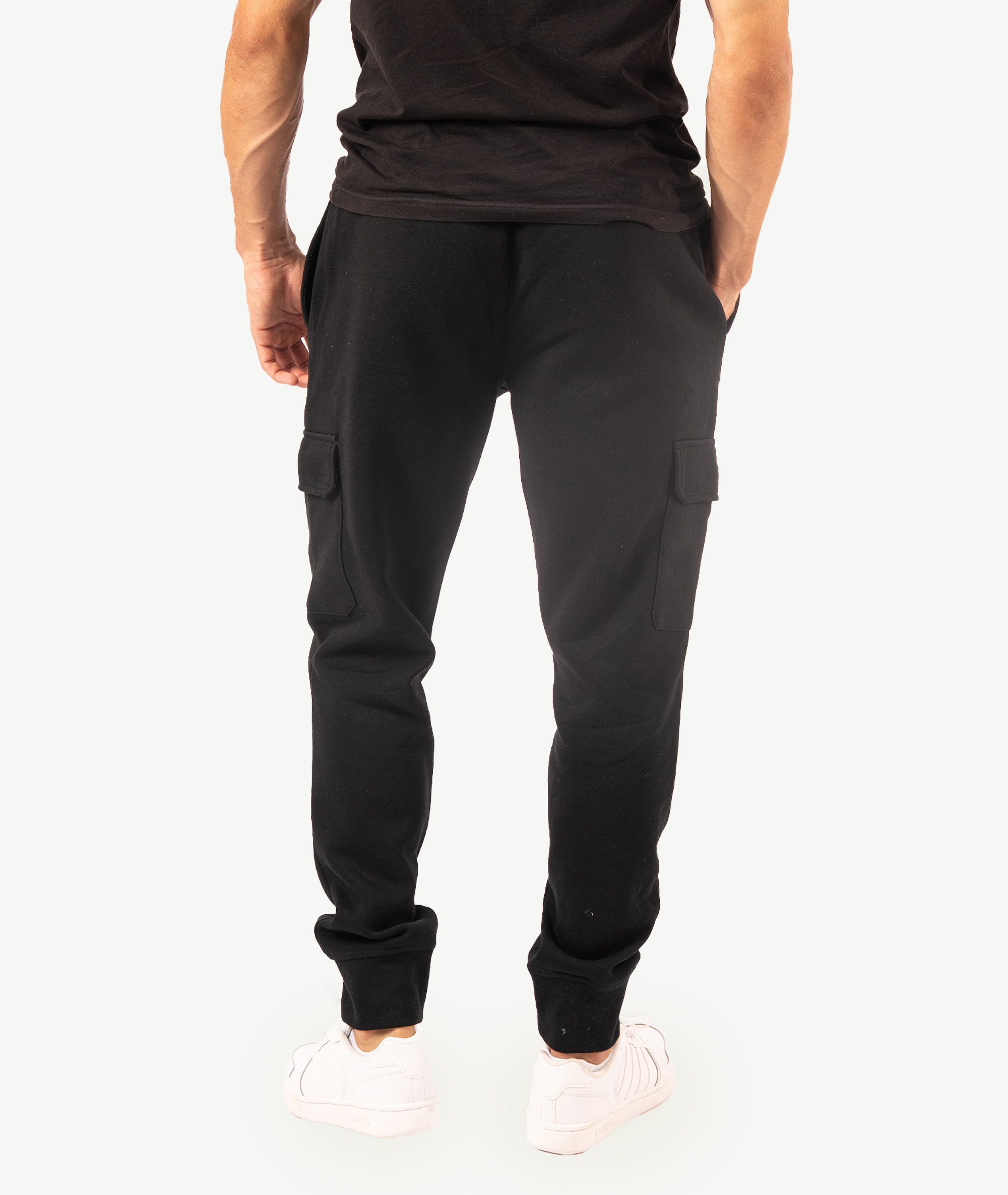 Jogging REEBOK en molleton doux, coloris noir, taille à cordon et poche cargo. Parfait pour le sport comme pour la détente.