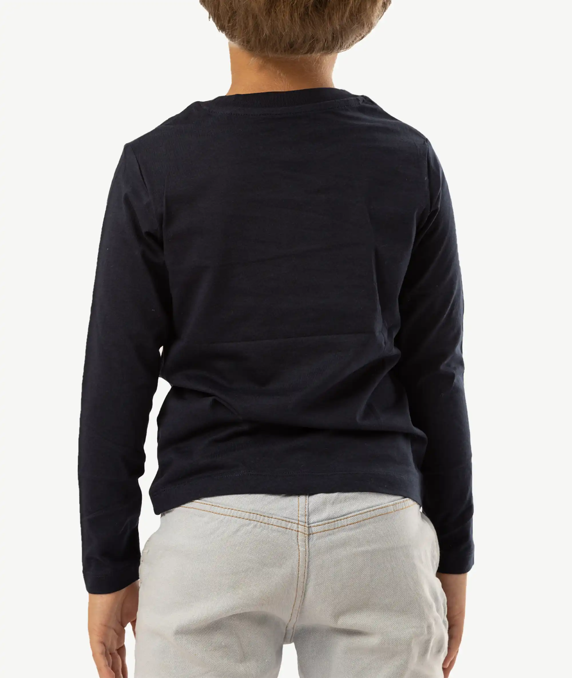 T-shirt manches longues en jersey doux, coupe regular. Grand imprimé graphique JACK & JONES rouge sur fond rayé blanc. Confortable, stylé, parfait pour l’école et le week-end.
