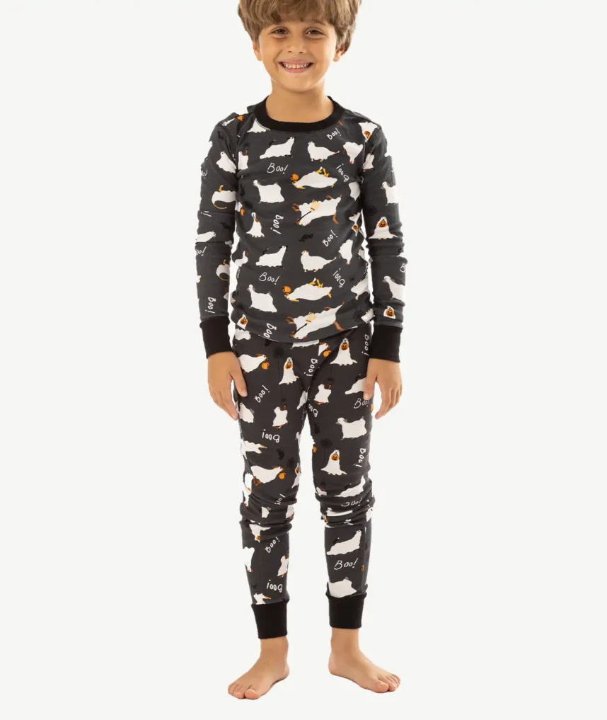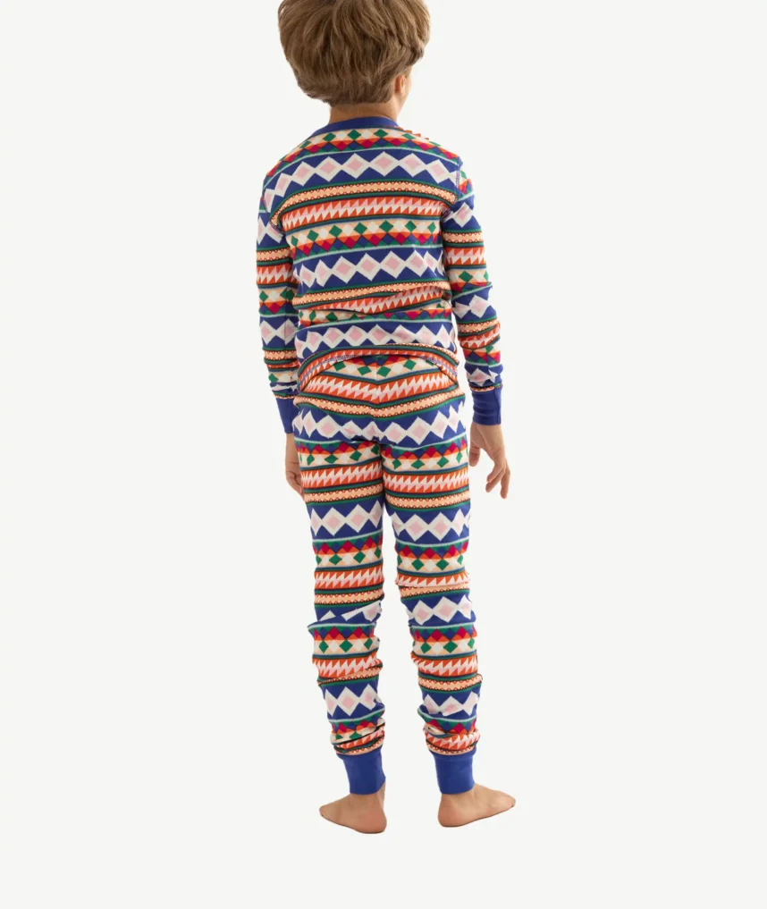 Pyjama ludique et ultra-doux avec imprimé alphabet multicolore sur fond écru. Haut manches longues + pantalon assorti pour des nuits confort… et pleines de lettres !